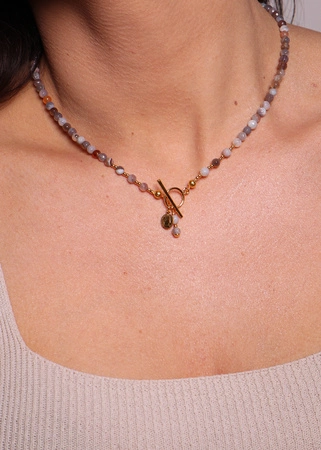 Bransoletka srebrna pozłacana z kamieni naturalnych agat botswana 3mm