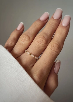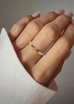 Elastic ring with natural stones, cubic zirconia, beige and garnet