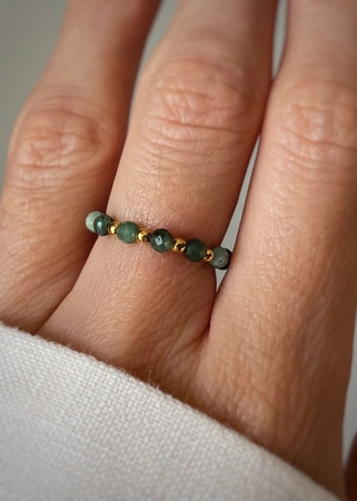 Elastic Ring Natural Stones Rose Quartz, Rhodochrosite, Mother of Pearl