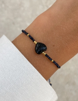 Silver bracelet with natural stones 3 mm Cairo night interleaved with silver balls
