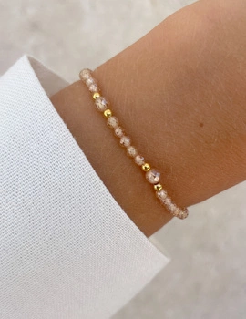 Bracelet natural stones rhodonite cubic zircon champagne silk thread