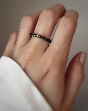 Gold-plated silver bracelet made of natural black spinel stones interleaved with 3 mm gold-plated beads