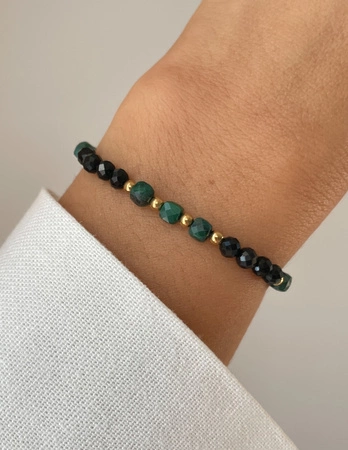Bracelet on rubber band agate mossy with hematite - abundance, confidence, optimism
