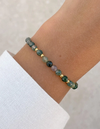Bracelet on an elastic band with khaki cubic zirconia and natural pearl