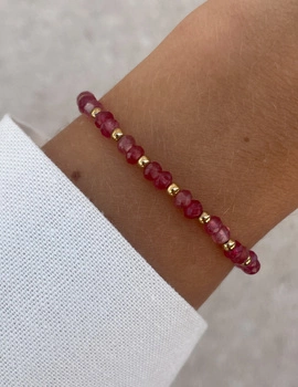 Set of Three Elastic Natural Stone Rings - Champagne Cubic Zirconia and Rhodonite