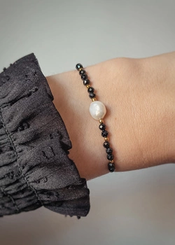 Bransoletka srebrna pozłacana z kamieni naturalnych agat botswana 3mm