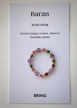Elastic ring with natural stones, cubic zirconia, beige and garnet