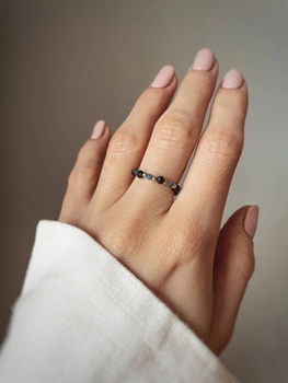 Flexible ring with natural stones, beige cubic zirconia and garnet