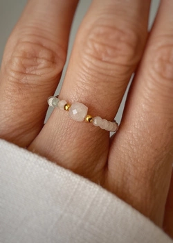 Elastic ring Natural Stones Fluorite Silver Gold-plated