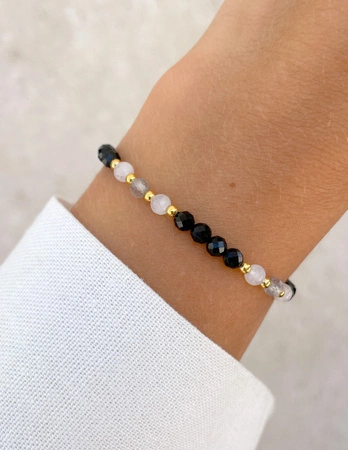 Bracelet on rubber band agate mossy with hematite - abundance, confidence, optimism