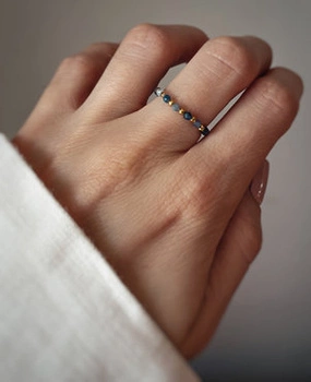 Flexible ring with natural stones, beige cubic zirconia and garnet