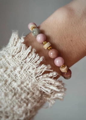 Ring Elastic Natural Stones Rhodonite Silver Gold-plated