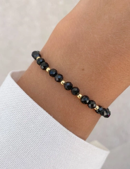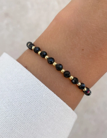 Bransoletka na gumce z czarnego turmalinu z hematytem - ochrona, odwaga, pamięć
