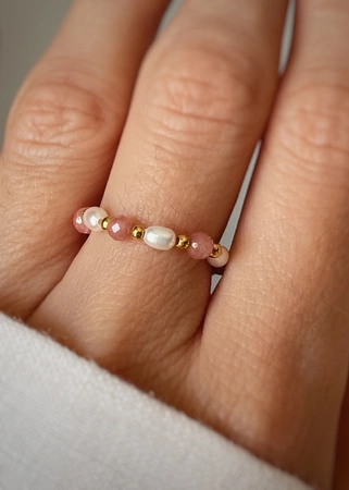Pierścionek elastyczny rodochrozyt perła naturalna