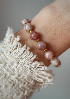 Bransoletka Kamienie Naturalne Kwarc Różowy i Rodochrozyt