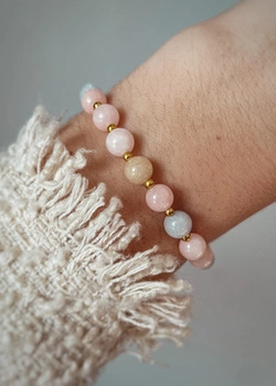 Bransoletka Kamienie Naturalne Kwarc Różowy Rodochrozyt Masa Perłowa