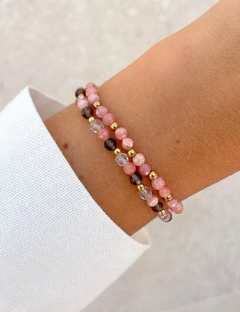 Bransoletki na gumce - rodochrozyt, kwarc dymny, kryształ górski z hematytem