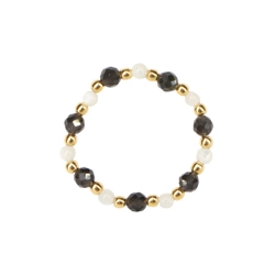 Pierścionek elastyczny kamienie naturalne kwarc dymny i perła