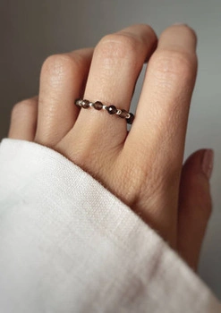 Pierścionek elastyczny kamienie naturalne czarny agat z pirytem