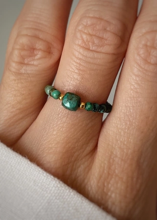 Pierścionek elastyczny kamienie naturalne turkus afrykański