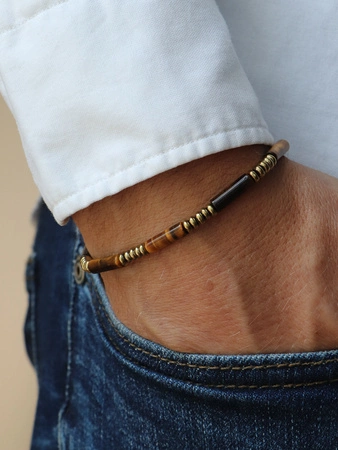 Bransoletka męska - lawa wulkaniczna, tygrysie oko