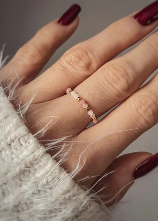 Pierścionek Elastyczny Kamienie Naturalne Kwarc Różowy i Rodochrozyt