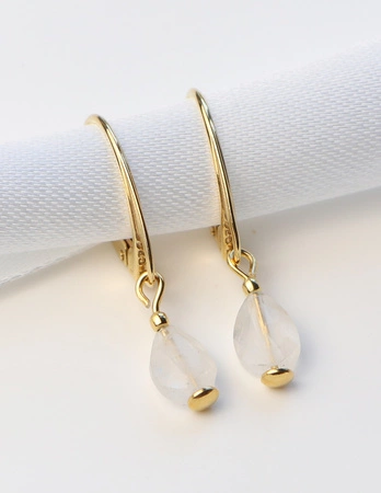 Kolczyki pozłacane - Kamień Księżycowy, Biały Agat