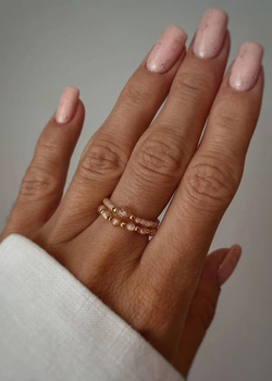 Pierścionek Elastyczny Cyrkonia Szampańska Masa Perłowa