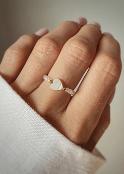 Pierścionek elastyczny kamienie naturalne Kryształ Górski, Masa Perłowa