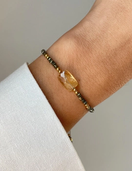 Dopełnienie wymienionych ozdób stanowi elegancka bransoletka z pirytu. Warto zakupić naraz cały zestaw biżuterii z tego kamienia, by uzyskać spójną całość i cieszyć się jego niezwykłymi właściwościami.