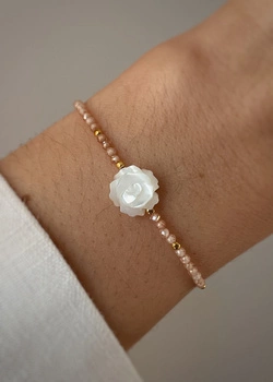 Bransoletka na nici z cyrkonii szampańskiej i róży z masy perłowej, dobrobyt, pewność siebie
