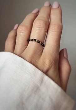 Flexible ring with natural stones, beige cubic zirconia and garnet